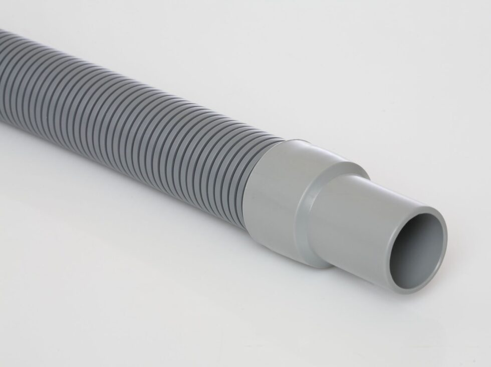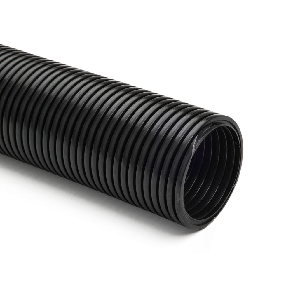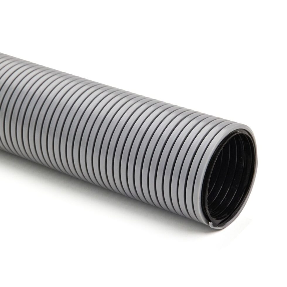Gray or black polyethylene copolymer hose reinforced with an integral polyethylene helix.