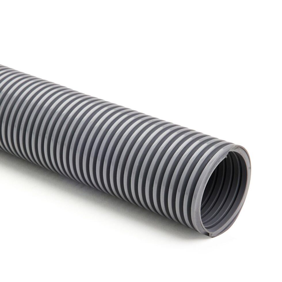 Light weight gray polyethylene copolymer hose reinforced with an integral polyethylene helix..