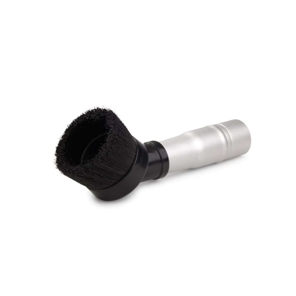Vacuum attachment used for cleaning dust and debris from small hard to reach areas.