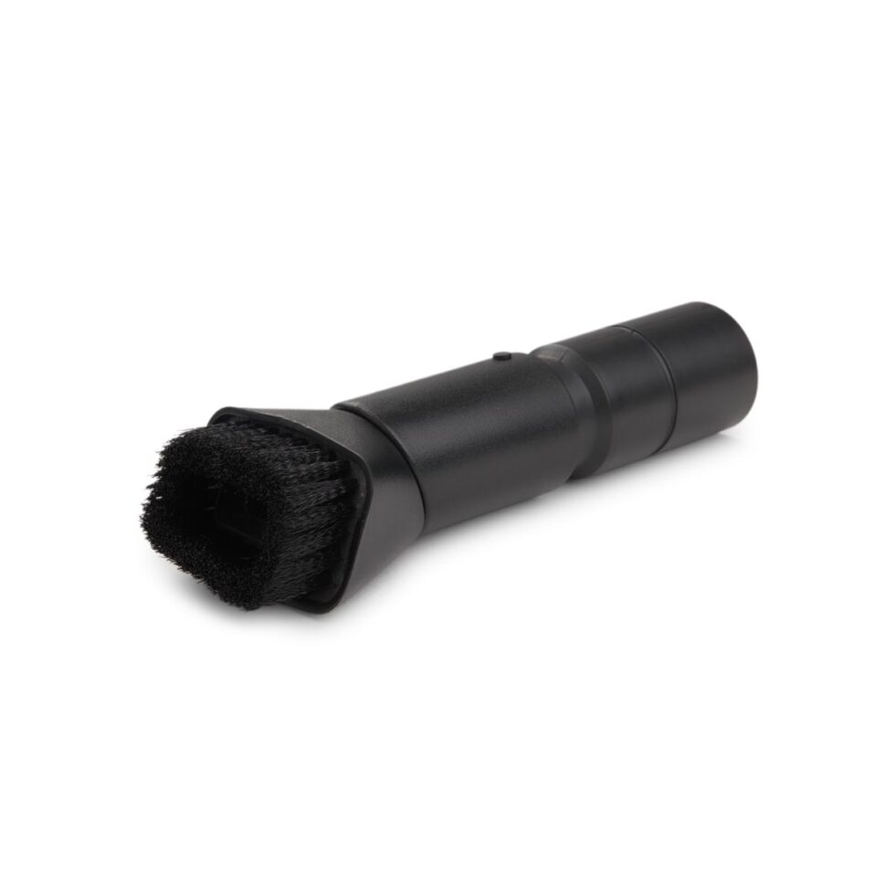 Vacuum attachment used for cleaning dust and debris from small hard to reach areas.