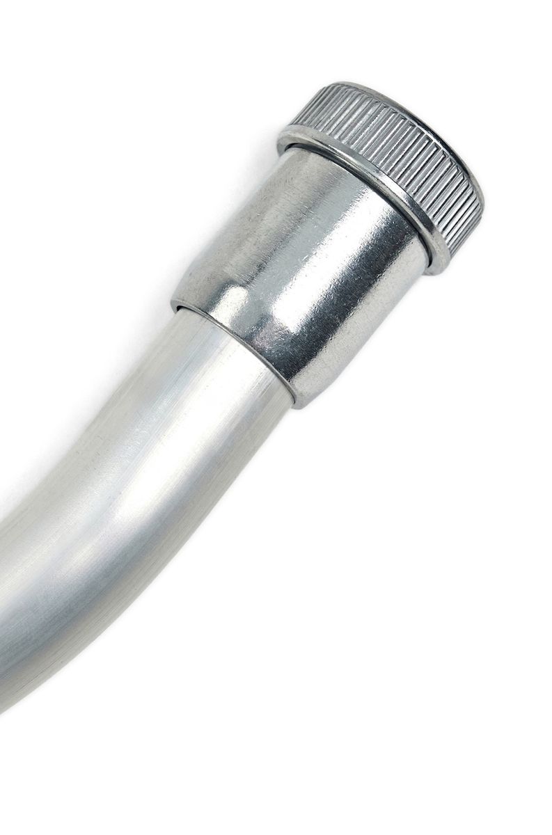 Single bend aluminum vacuum cleaning extension used when cleaning overhead or in difficult to reach areas.