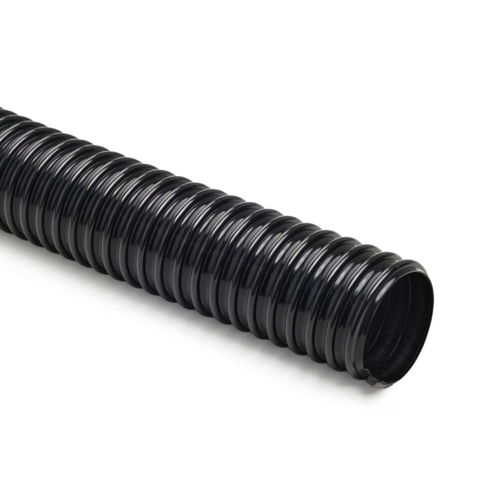 Medium weight black co-extruded static conductive PVC hose with a rigid black external PVC helix.