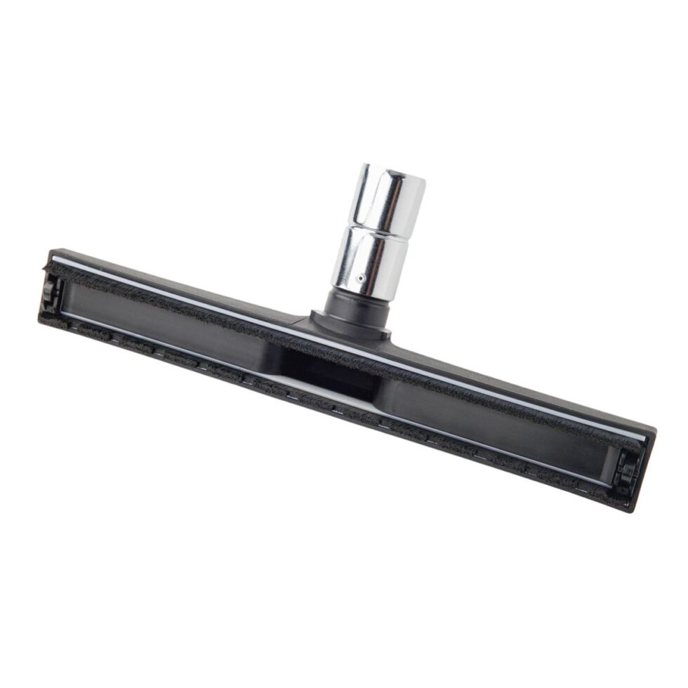 Wheeled polypropylene floor brush for dry pick-up on all bare surfaces.