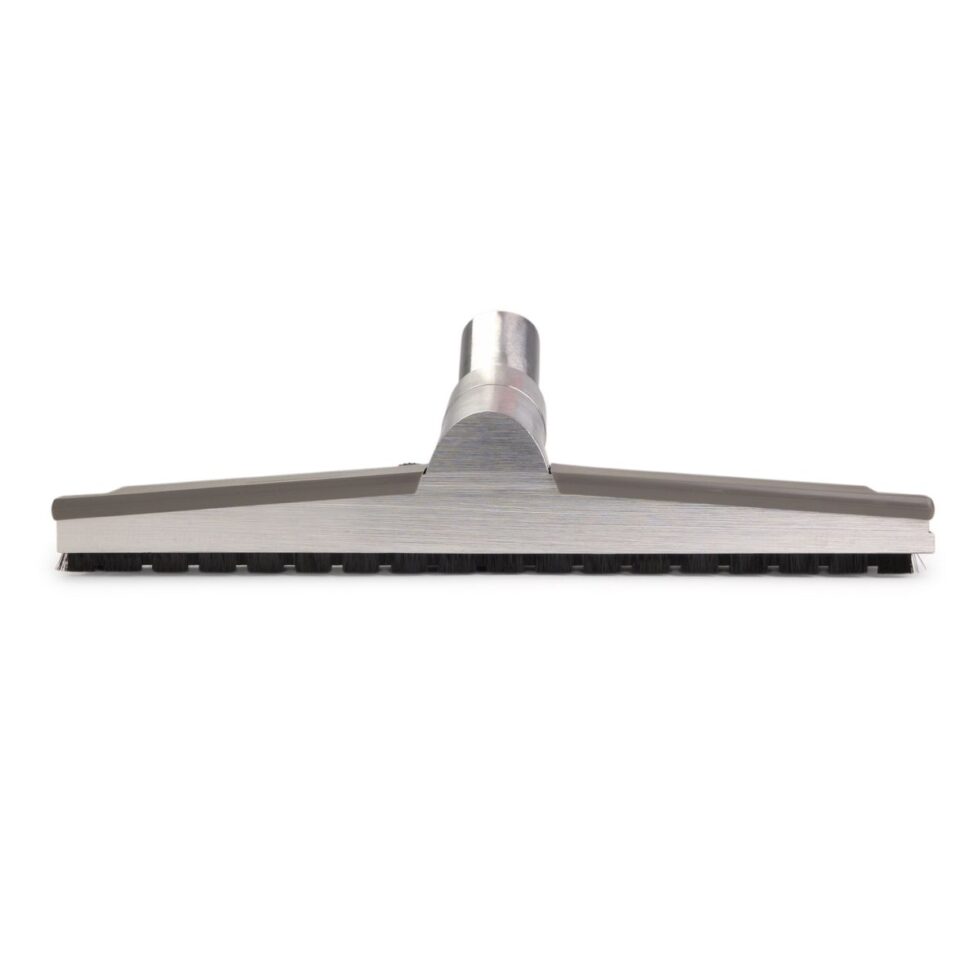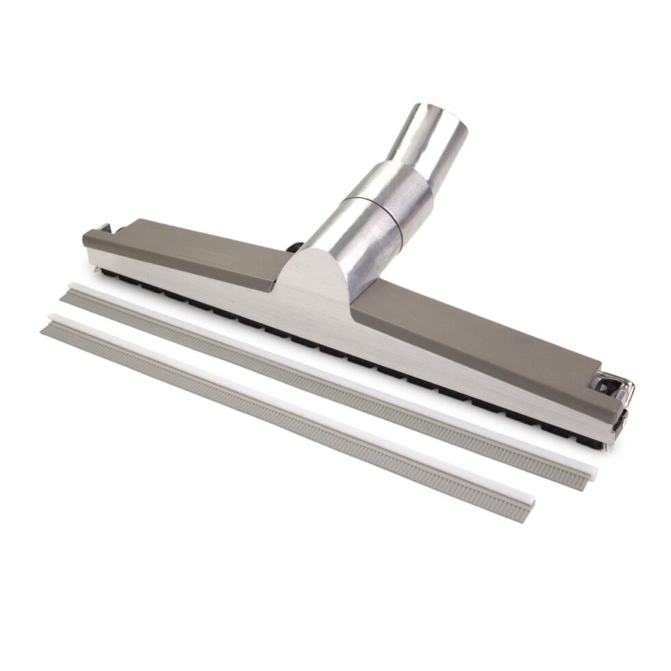 Squeegee blade and floor brush aluminum combo tool with wheels.