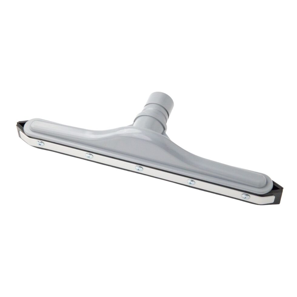 Wheeled neoprene blade squeegee tool for wet pick-up on bare surfaces.