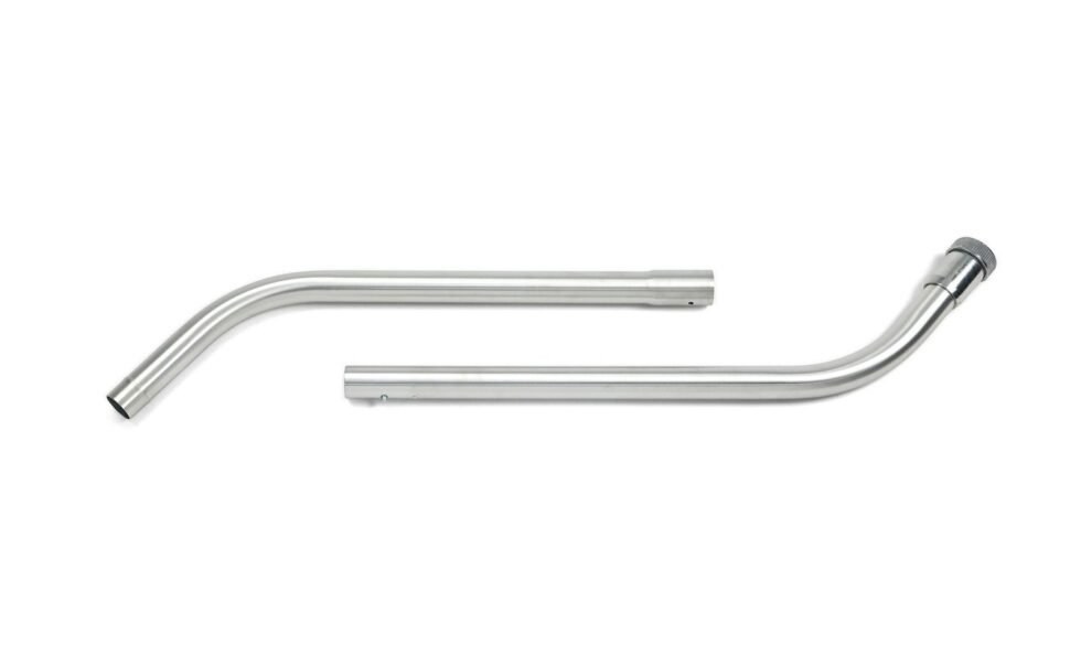 Double bend, two-piece aluminum vacuum cleaning wand for industrial vacuums.