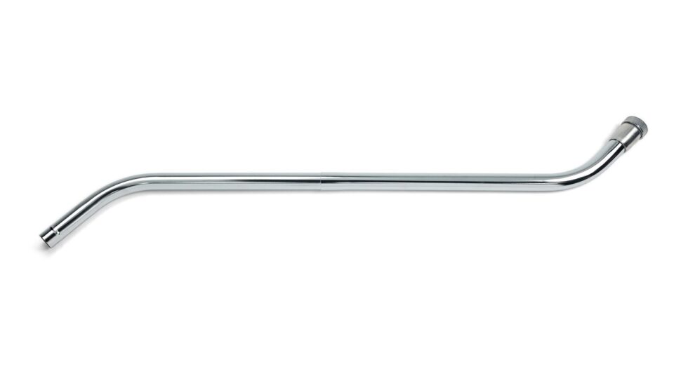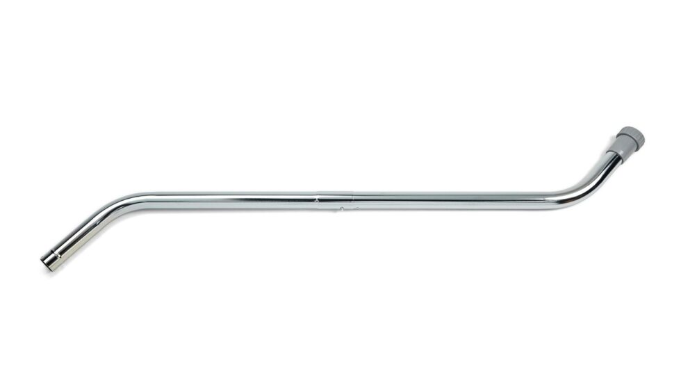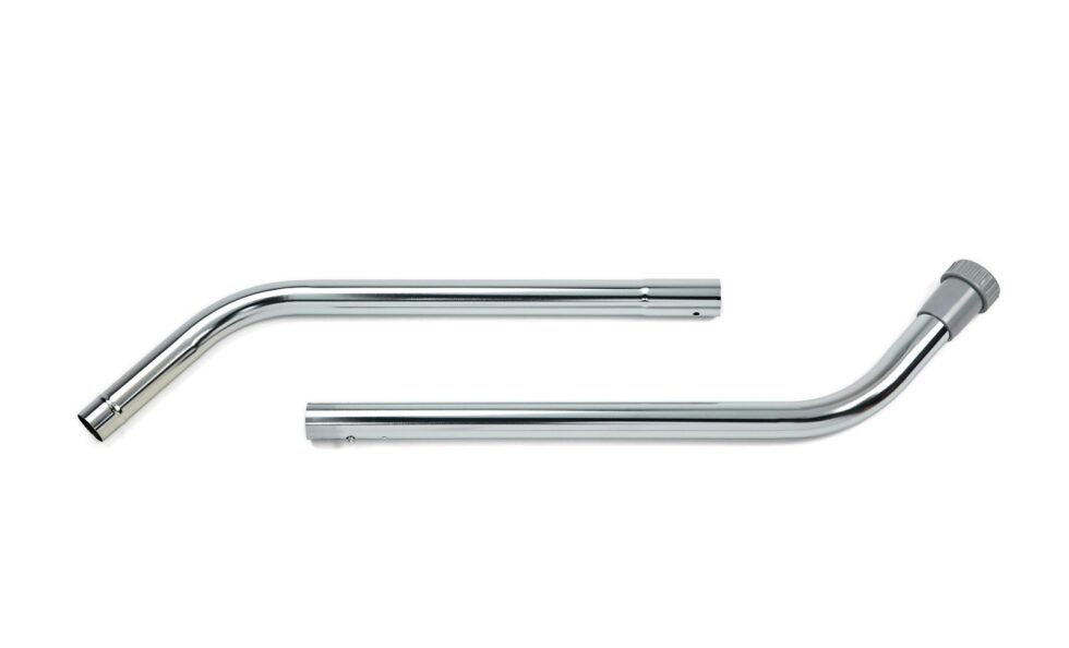 Double bend, two-piece chrome vacuum cleaning wand for commercial vacuums.