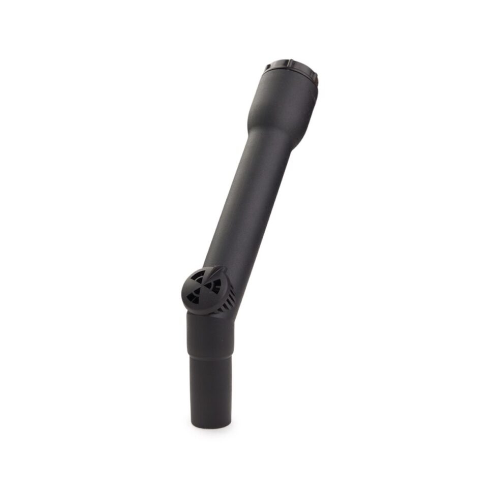 Threaded, plastic curved wand handle to clean narrow spaces or difficult to reach areas.