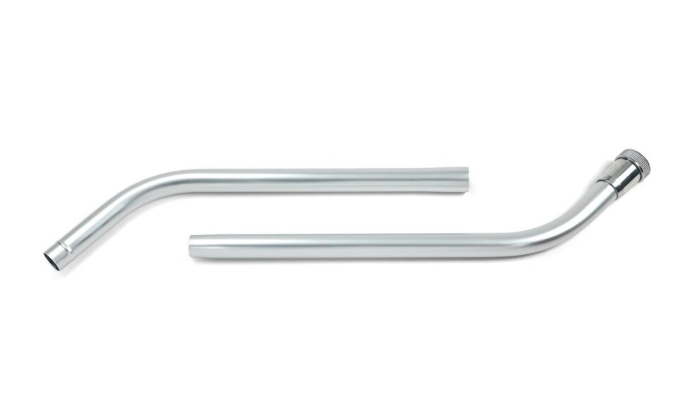 Double bend, two-piece aluminum vacuum cleaning wand for industrial vacuums.