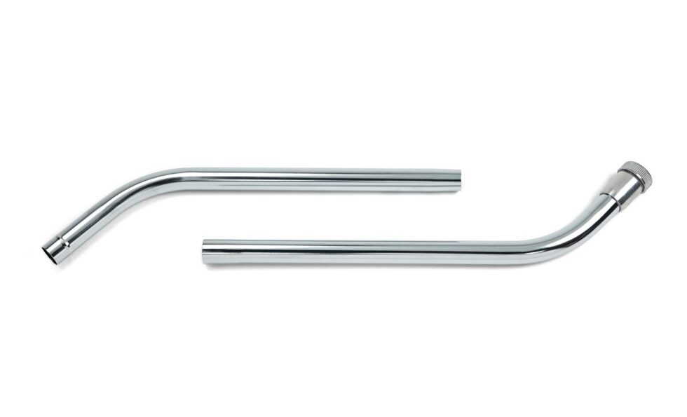 Double bend, two-piece chrome vacuum cleaning wand for industrial vacuums.