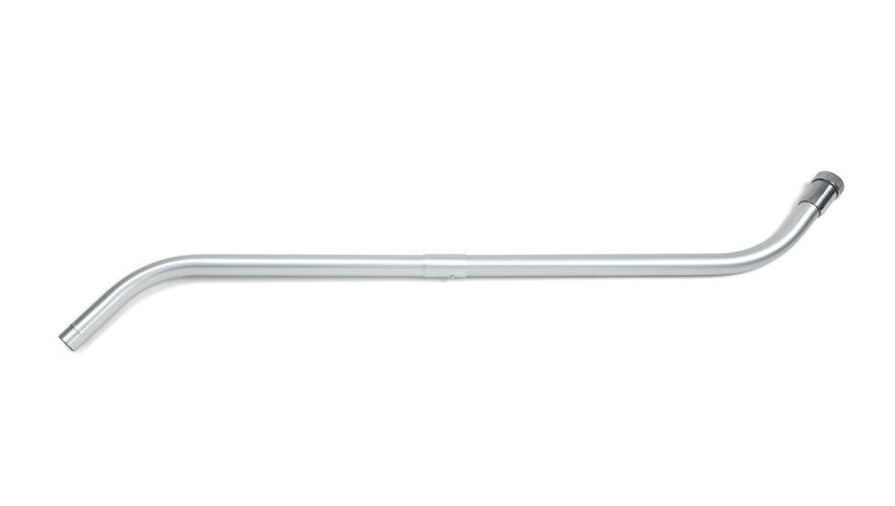 Double bend, one-piece aluminum vacuum cleaning wand for industrial vacuums.