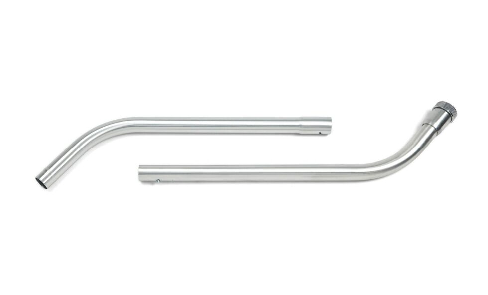 Double bend, two-piece aluminum vacuum cleaning wand for industrial vacuums.